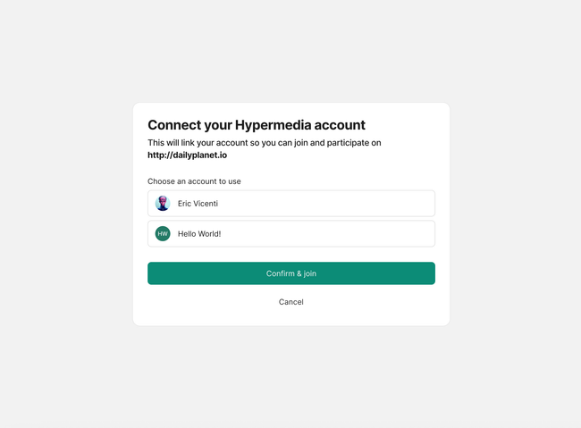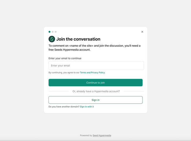 We facilitate the experience with clear copy text to set up expectations. Title is centered in the value not in the action (Join the conversation not create an account)