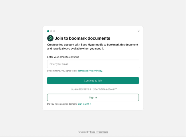 Tiggers when user wants to do certain actions (comment, follow, bookmark a document)