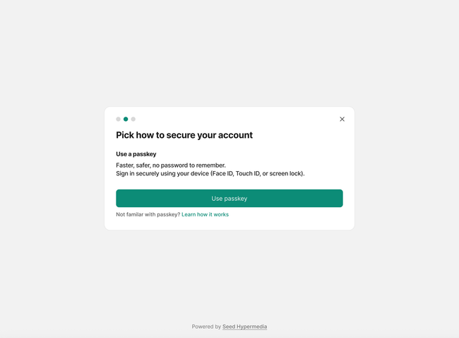 By now we just add the option to secure with passkey until we have the password flow ready and considering all edge cases Eric Vicenti Gabo H Beaumont . I propose to create a link to a Seed doc. "Not familar with passkey? Learn how it works" and explain basic about passkeys to learn more about it.