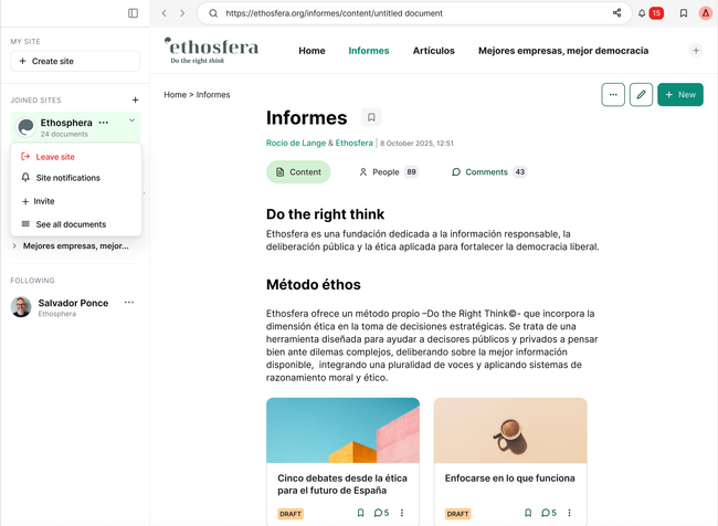 When pressing the 3 dots options in app user can Leave the site, which means unjoin and unsubscribe.