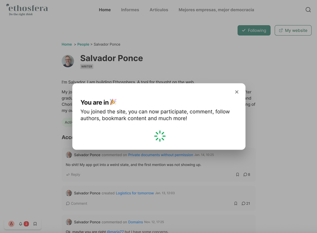 2. Follow a member of a site